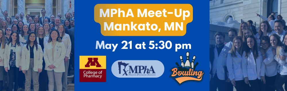 Due to low attendance, this event is cancelled and will be rescheduled for a later date. Join MPhA and the University of MN College of Pharmacy for an evening of networking with fellow pharmacy professionals in Mankato on Wednesday, May 21, 5:30 - 7 p.m. - All alumni, faculty, staff, students, preceptors, friends of the College of Pharmacy and pharmacy professionals are invited to attend